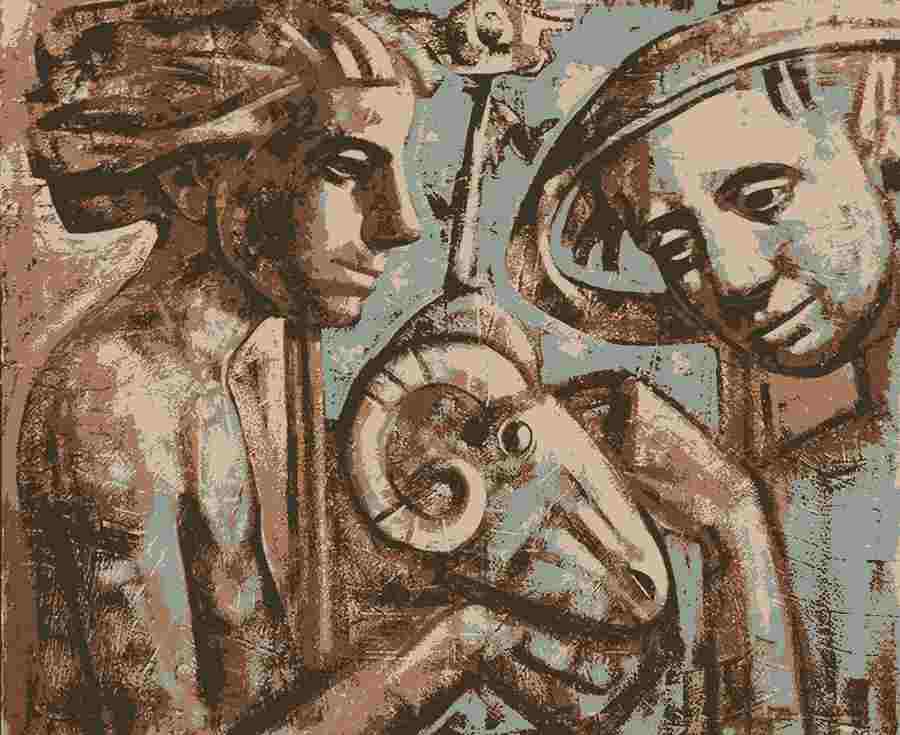 Mentre i movimenti dell'universo fantastico di Ferraj sono imprigionati di ogni singolo elemento della composizione, la stasi dei personaggi‑statue risulta espressa in una meccanica dichiarata ed evidente. In Dialogo eterno e in Archeologia naturale la stanza è uno spazio di concentrazione. Chi guarda è portato dentro ad esplorarla e misurarla: è un topos dove la geometria lineare può ripiegarsi riflessivamente o generare, all'opposto, distanti e, inversivi fantasmi. Essa è anche un luogo in cui il tempo può essere dilatato, disorientato e annullato. Questa particolare dimensione del tempo interviene, spesso nella definizione del campo iconografico ferrajano: figure, animali ed oggetti, appartengono allo stesso ciclo: coniugano situazioni e pulsioni, incrociano apparenza e realtà. È, infine, una stanza silenziosa dove le "presenze mute" ‑ per dirla con il Lévinas de Le temps et l'autre ‑ parlano un loro linguaggio eloquente e irriproducibile che agita un vento della mente leggero e infrenabile.