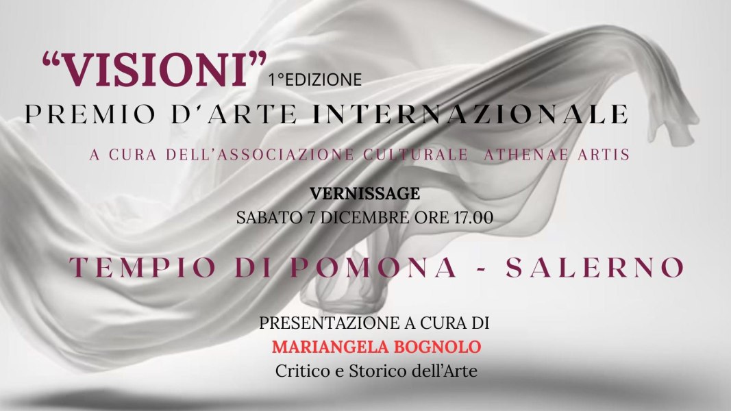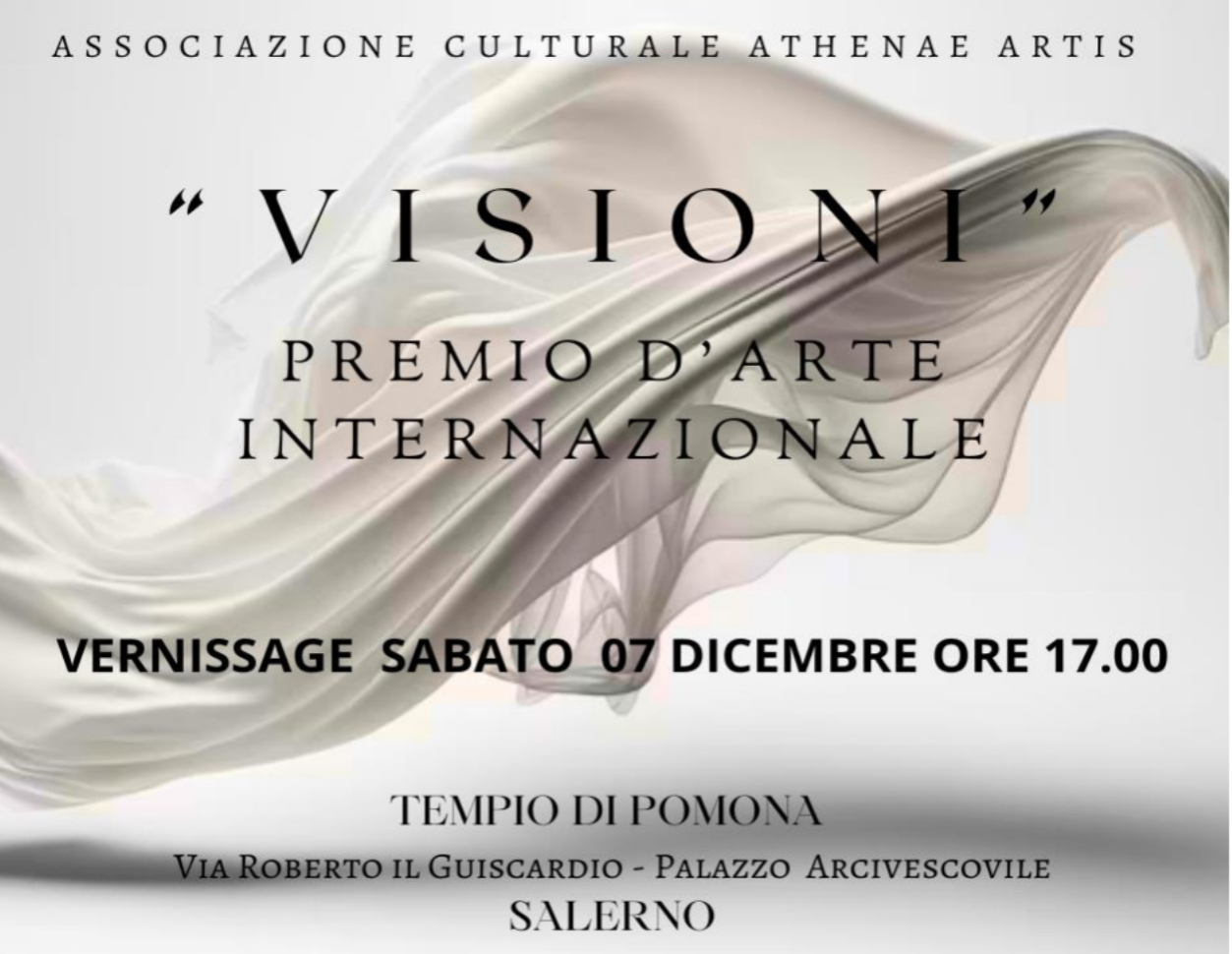 Dal 7 al 14 Dicembre 2024 il Suggestivo Tempio di Pomona Palazzo Arcivescovile, sito in Via Roberto il Guiscardo a Salerno, ospiterà la prima edizione del Premio d’Arte Internazionale «VISIONI» realizzato dall’Associazione Culturale “Athenae Artis” con il patrocinio del comune di Salerno.