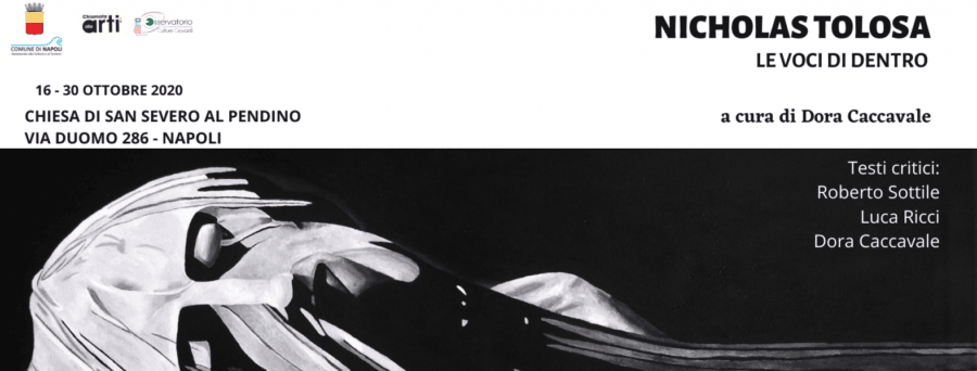Venerdì 16 Ottobre 2020, presso la Chiesa di san Severo al Pendino, via Duomo 286 - Napoli, si inaugura alle 18,00 la personale d’arte contemporanea di Nicholas Tolosa con il patrocinio del Comune di Napoli e dell’ Osservatorio Comunicazione Partecipazione Culture Giovanili (OCPG) dell’Università di Salerno. La mostra, a cura di Dora Caccavale con testi critici di Roberto Sottile, Luca Ricci e Dora Caccavale, si intitola “Le voci di dentro”. Fino al 30 ottobre, dal lunedì al venerdì dalle 9 alle 18.