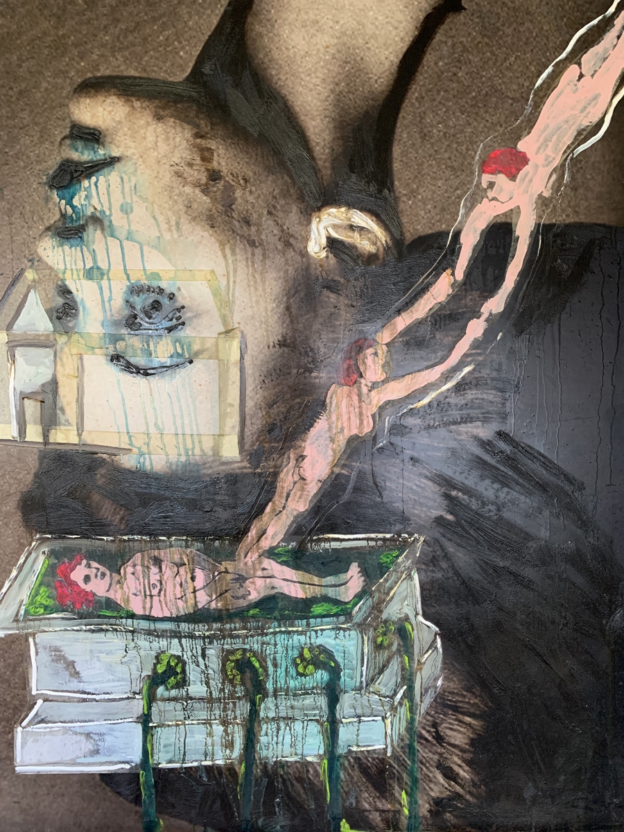 Il percorso espositivo comprende una trentina di opere, tutte inedite, realizzate dal 2020 ad oggi. Tele artigianali e di scena (in alcuni casi recuperate dalla messa in scena della “Tosca” al Teatro La Fenice di Venezia), con imprimitura a gesso, lavorate dall’artista con colori ottenuti da pigmenti puri, unitamente a resine naturali, che donano al lavoro una finitura lucida.