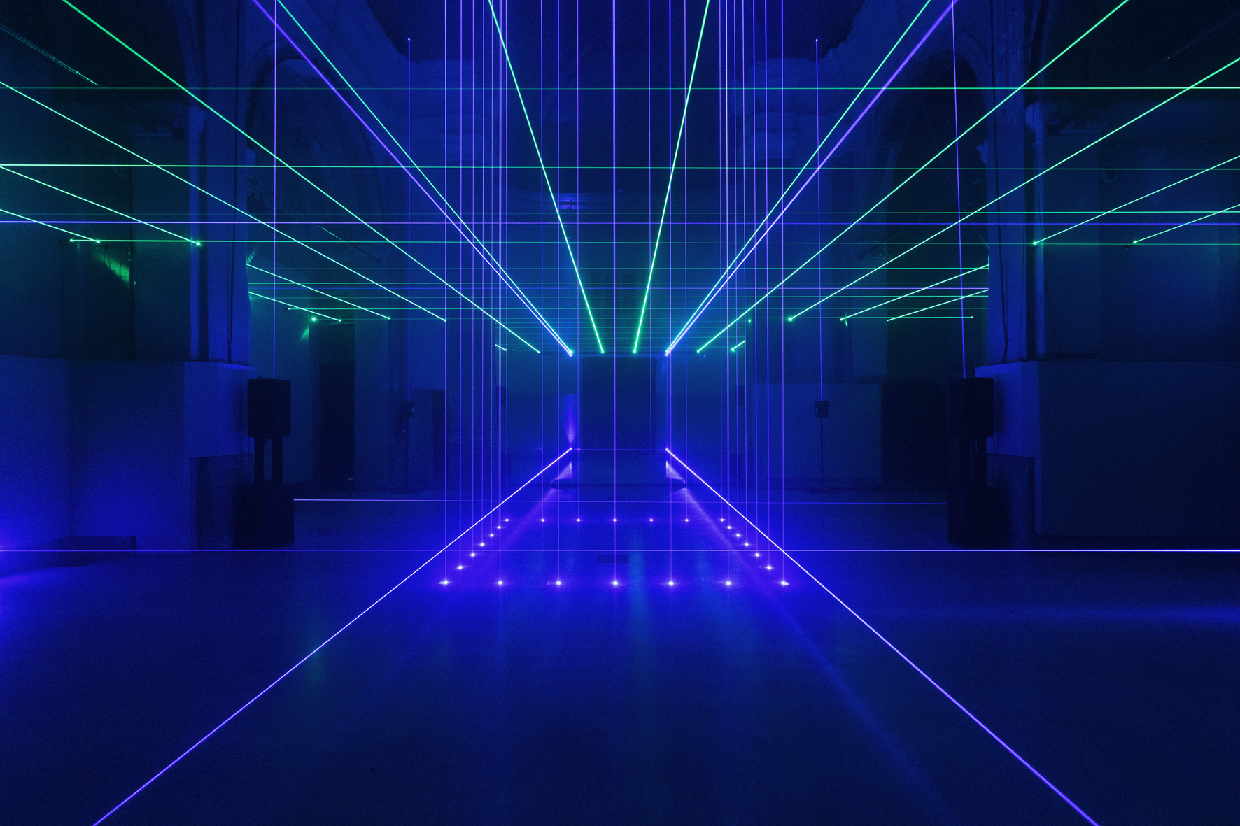 Il centro, posizione in cui avverrà – in occasione dell'opening di domenica 19 dicembre – la performance sonora di Katatonic Silentio, è il generatore di luci e suoni. L'azione della sound artist dialogherà con lo spazio dell'Ex Lavatoio e con i 180 laser programmati, attraverso l’utilizzo di fonti sonore multiple e differenziate tra loro, quasi come si trattasse di un’orchestra: le singole parti sono indipendenti tra loro ma allo stesso tempo concorrono alla creazione di un unicum coeso. L’obiettivo è quello di creare diversificazione, profondità e una drammaturgia del suono e della luce tramite elementi di inserimento e rottura, apparizione e sparizione, riempimento e svuotamento e così via.