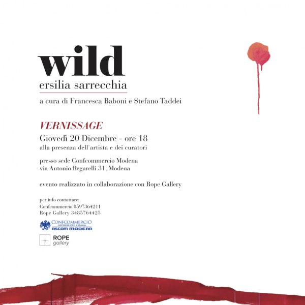 Giovedi 20 dicembre alle ore 18.00 presso la sede di Confcommercio di Modena si inaugura la personale di Ersilia Sarrecchia “Wild” a cura di Francesca Baboni e Stefano Taddei.