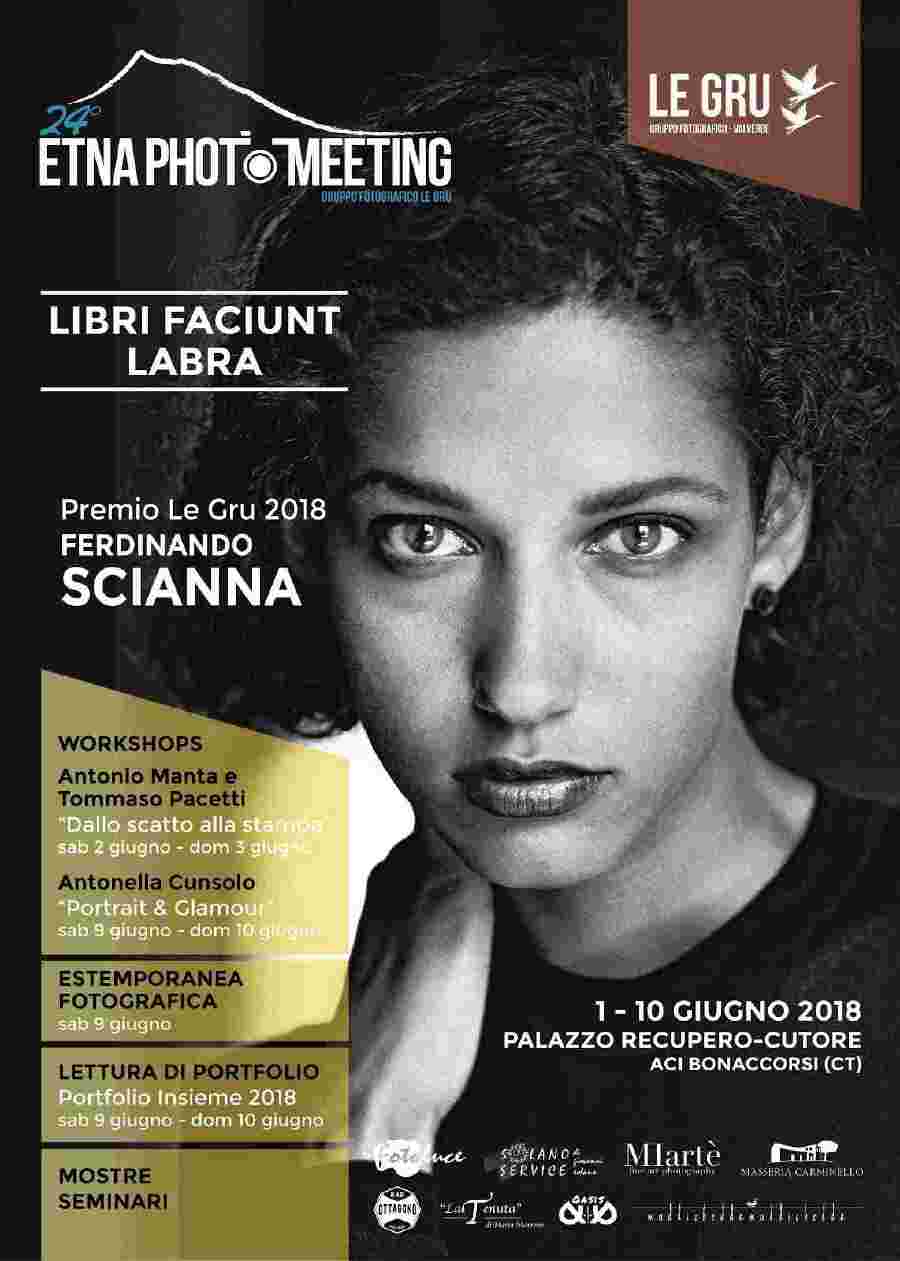 Aci Bonaccorsi (Catania) - Dal 1° al 10 giugno la prestigiosa cornice di Palazzo Recupero Cutore, nel cuore di Aci Bonaccorsi ospiterà l'Etna Photo Meeting, festival di fotografia organizzato dal Gruppo Fotografico Le Gru di Valverde e giunto alla sua 24esima edizione. Il tema scelto quest'anno è il motto latino "Libri Faciunt Labra" (I libri fanno le parole). Al centro della manifestazione, infatti, vi sarà il legame profondo che intercorre tra la fotografia e i libri, la letteratura, il racconto: di luoghi, di memorie, di sensazioni. In calendario dieci giorni di eventi, mostre, presentazioni di libri, workshop, letture portfolio ed estemporanee fotografiche. Ospite d'onore, il fotografo Ferdinando Scianna che sarà insignito del Premio Le Gru 2018.