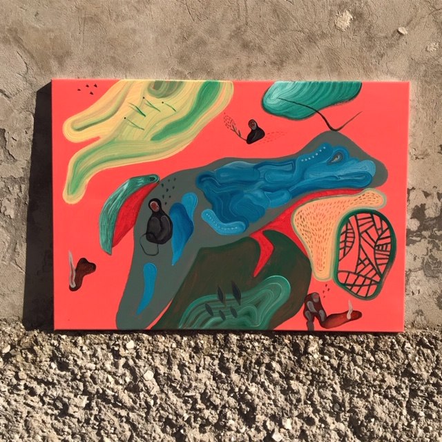 ColleVirtú è un luogo che forse esiste. È un borgo di poche anime appoggiato ad una mammella di montagna. Le anime vive sono un cane, anche due, una manciata di gatti gialli, due bambini e molti esseri femminili vecchi come radici. Le anime morte sono notturne, risiedono ovunque. L’artista le percorre e le impressiona. Le une e le altre. Le masse e le ombre. Nella pennellata più fluida e carezzevole, cerca i segni del suo passaggio da chissà dove. Un’esperienza di fantasma, carnale come un imbrunire.